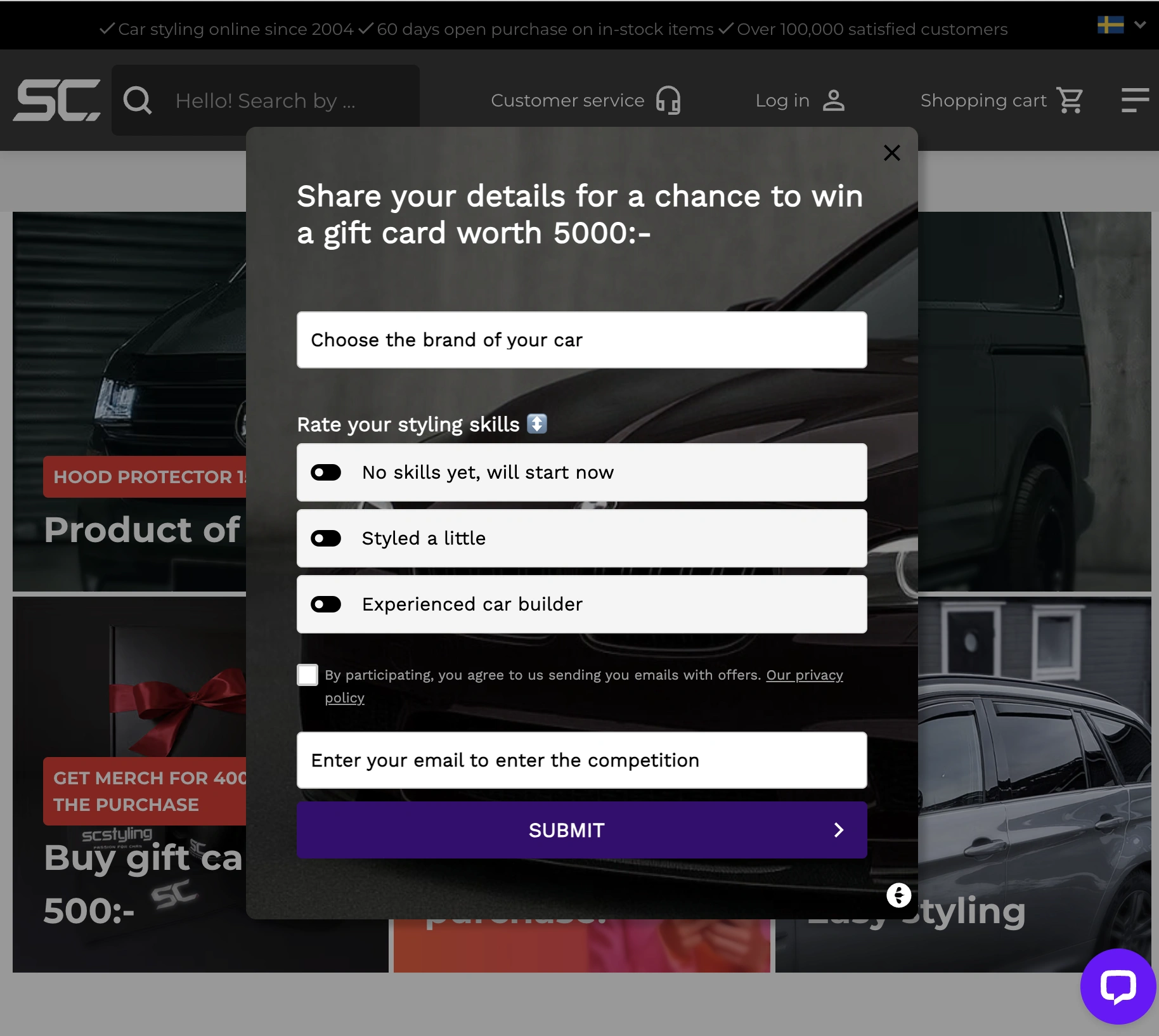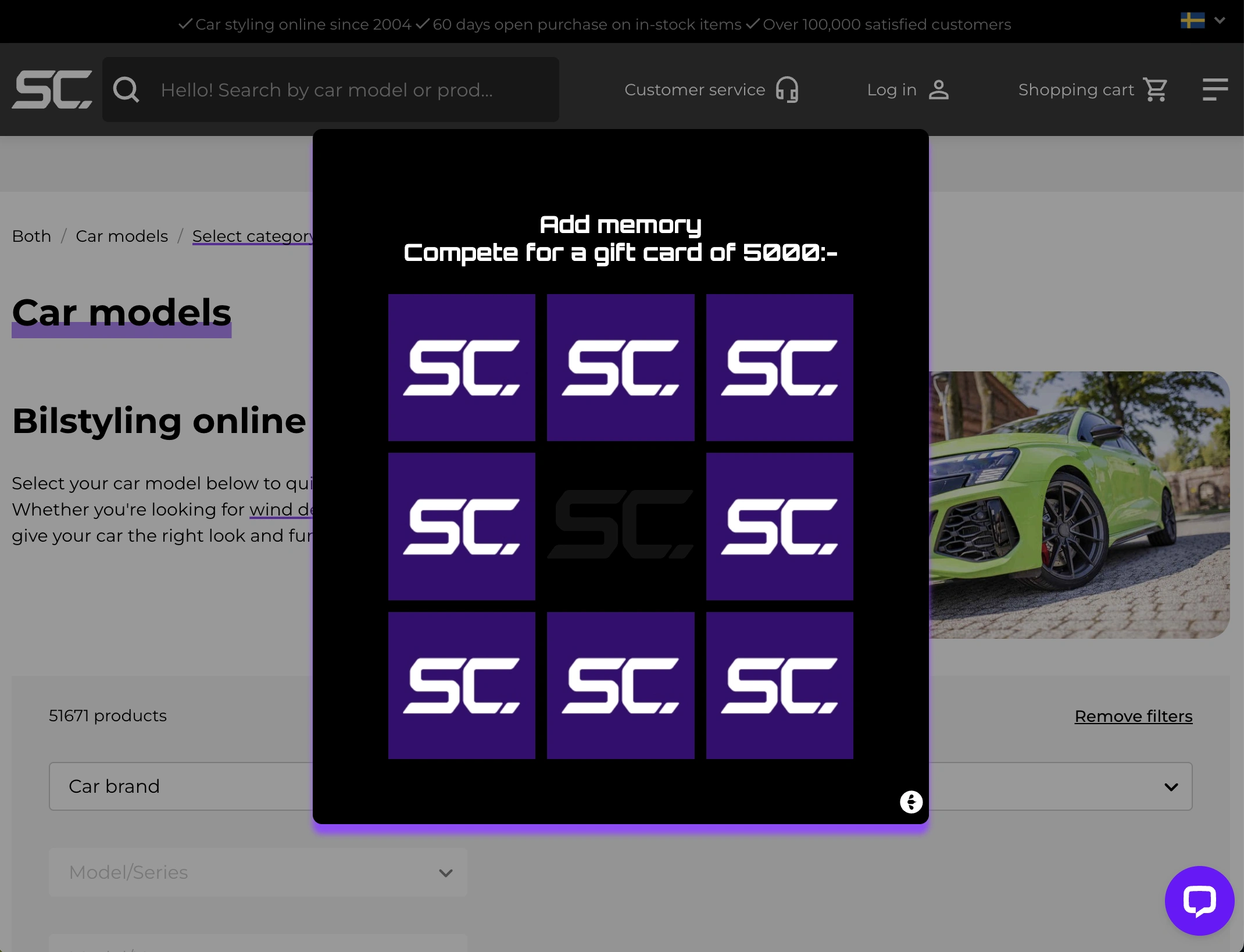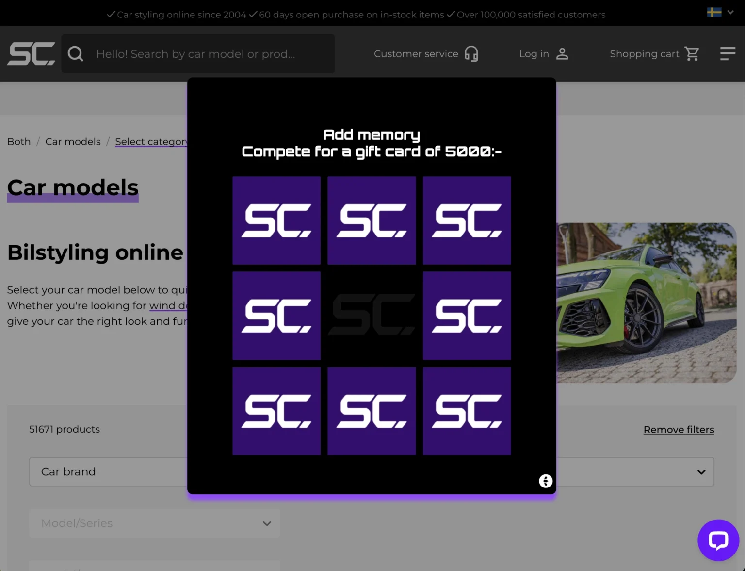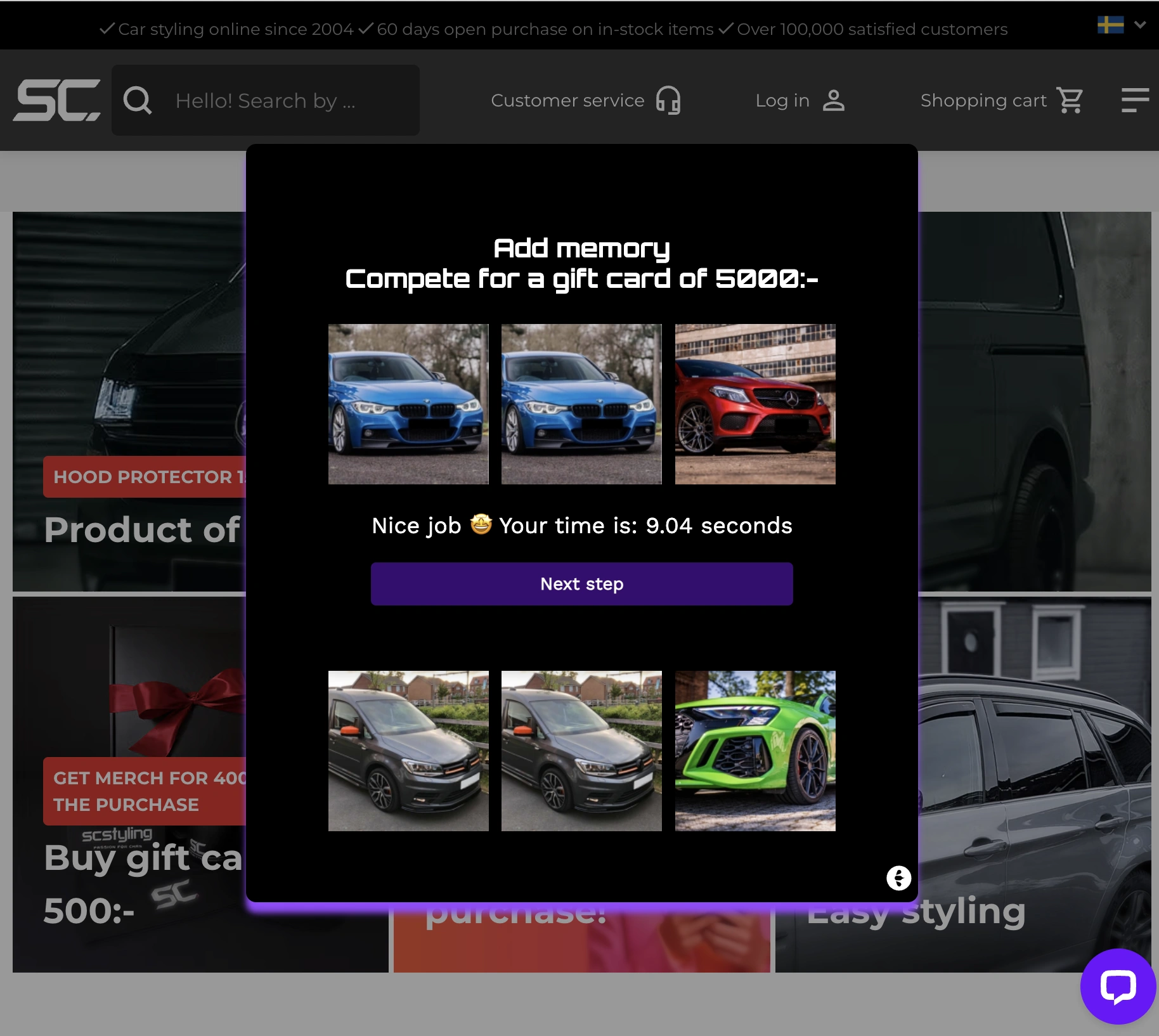 E-handelsutveckling used Triggerbee to create a memory signup campaign for SC Styling’s website, shown to all visitors who wanted to participate in a raffle.