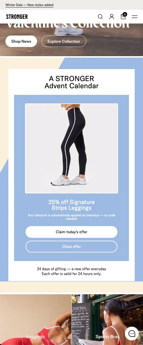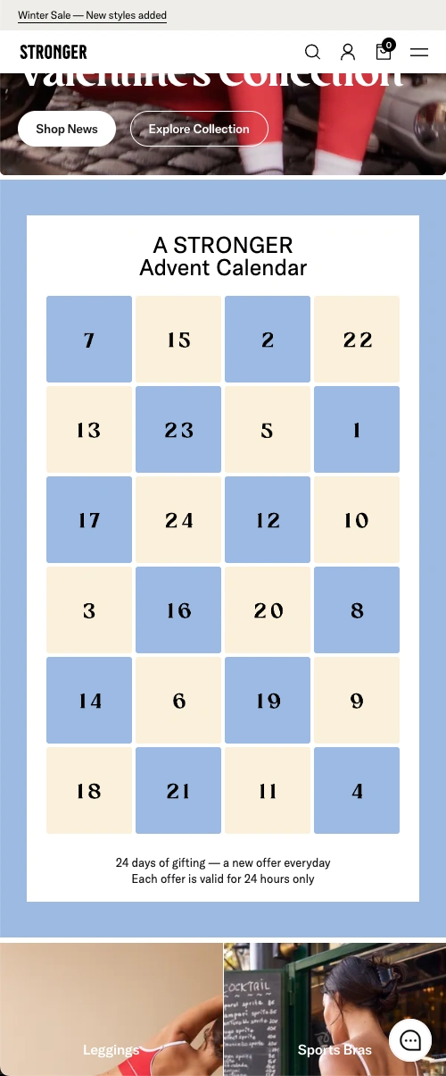 Stronger wanted to boost visitor engagement and promote their products with daily calendar offers in December, across five domains.